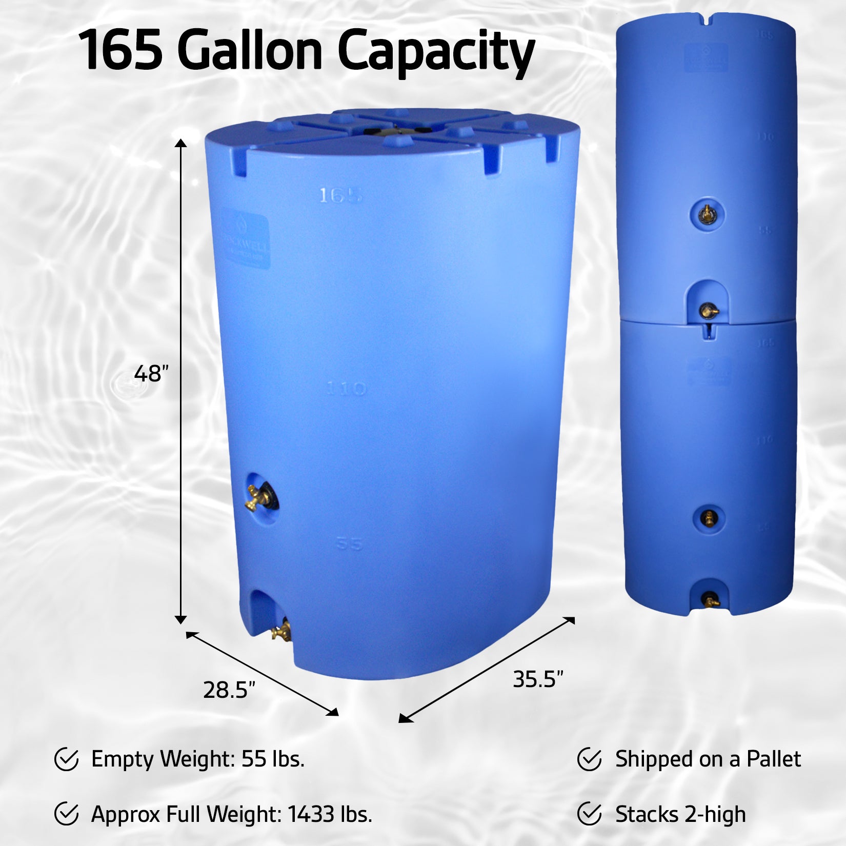 Upgrade your water storage with the Gallonzo 165, a durable, safe, and stackable 165-gallon water tank designed for maximum capacity and space efficiency. Its 2-high stackable design lets you store more water in less space, perfect for homes, cabins and rainwater collection.